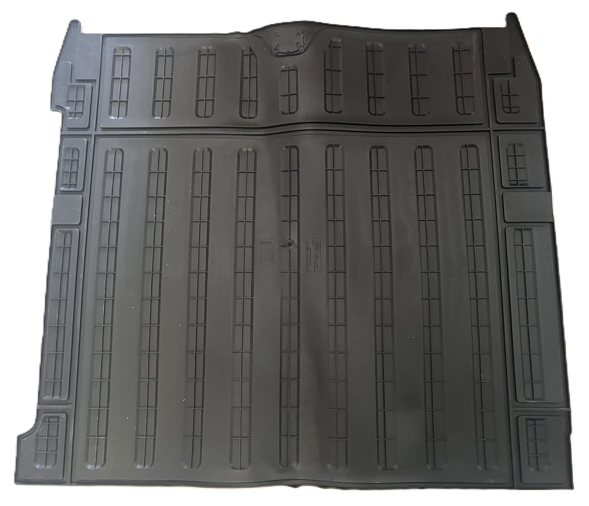 tappeto in gomma impermeabile per il vano di carico posteriore dei veicoli Land Rover Discovery dotati di aria condizionata posteriore. Questo tappeto, di colore Ebony (nero), è progettato per proteggere la moquette del vano di carico da sporco e usura quotidiana. È dotato di un bordo rialzato per trattenere eventuali liquidi o detriti, garantendo una protezione ottimale. Inoltre, è compatibile con le guide del vano di carico, i divisori e le paratie per i bagagli. Per una protezione aggiuntiva, è disponibile un'estensione del tappeto (codice VPLRS0374PVJ) che copre il retro dei sedili posteriori quando sono abbassati
